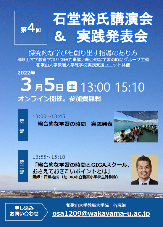 【教職大学院共催】3/5(土)開催!「第4回石堂裕氏講演会&実践発表会」オンライン
