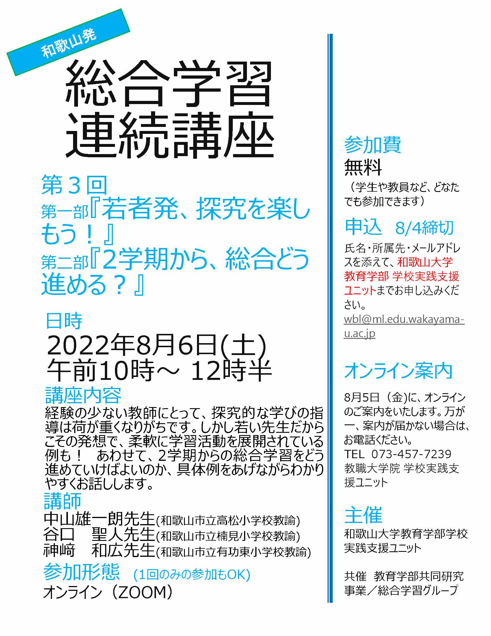 和歌山大学教職大学院 学校実践支援ユニット(wbl@ml.edu.wakayama-u.ac.jp)