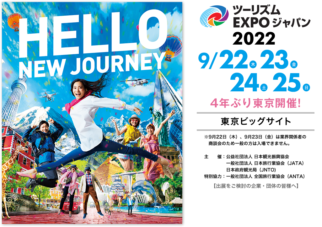「世界の観光・ツーリズムをリードする」総合観光イベント「ツーリズムEXPOジャパン2022」 が、4年ぶりに東京(会場:東京ビッグサイト)で開催されます。