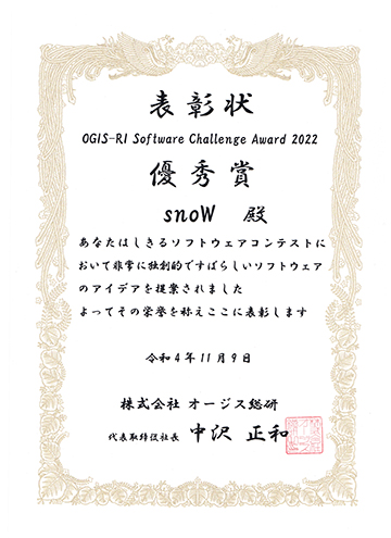 【システム工学部】OGIS-RI Software Challenge Award 2022で優秀賞を受賞