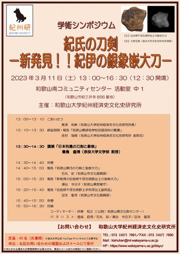 【紀州研】2022年度 学術シンポジウム「紀氏の刀剣-新発見!!紀伊の銀象嵌大刀-」について