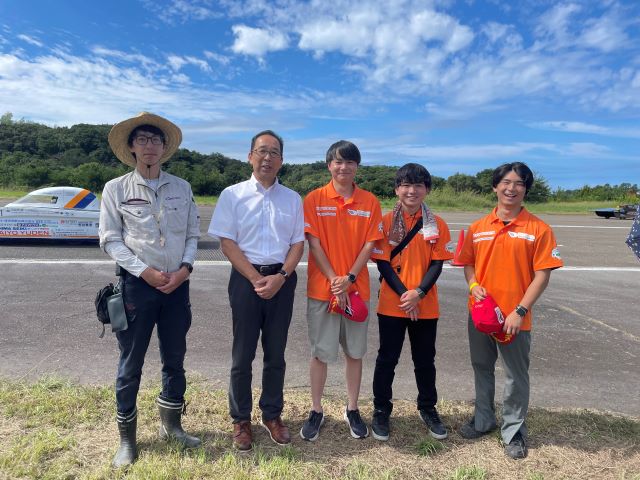 本山学長は、和歌山大学ソーラーカープロジェクトを応援するため現地を訪問し、部員に激励と応援を行い、その健闘を称賛しました。また、2025年にオーストラリアで開催されるソーラーカーレースへの出場と、大陸縦断3000kmの完走を目指すプロジェクトチームの結束力と実力に確信を持ちました。