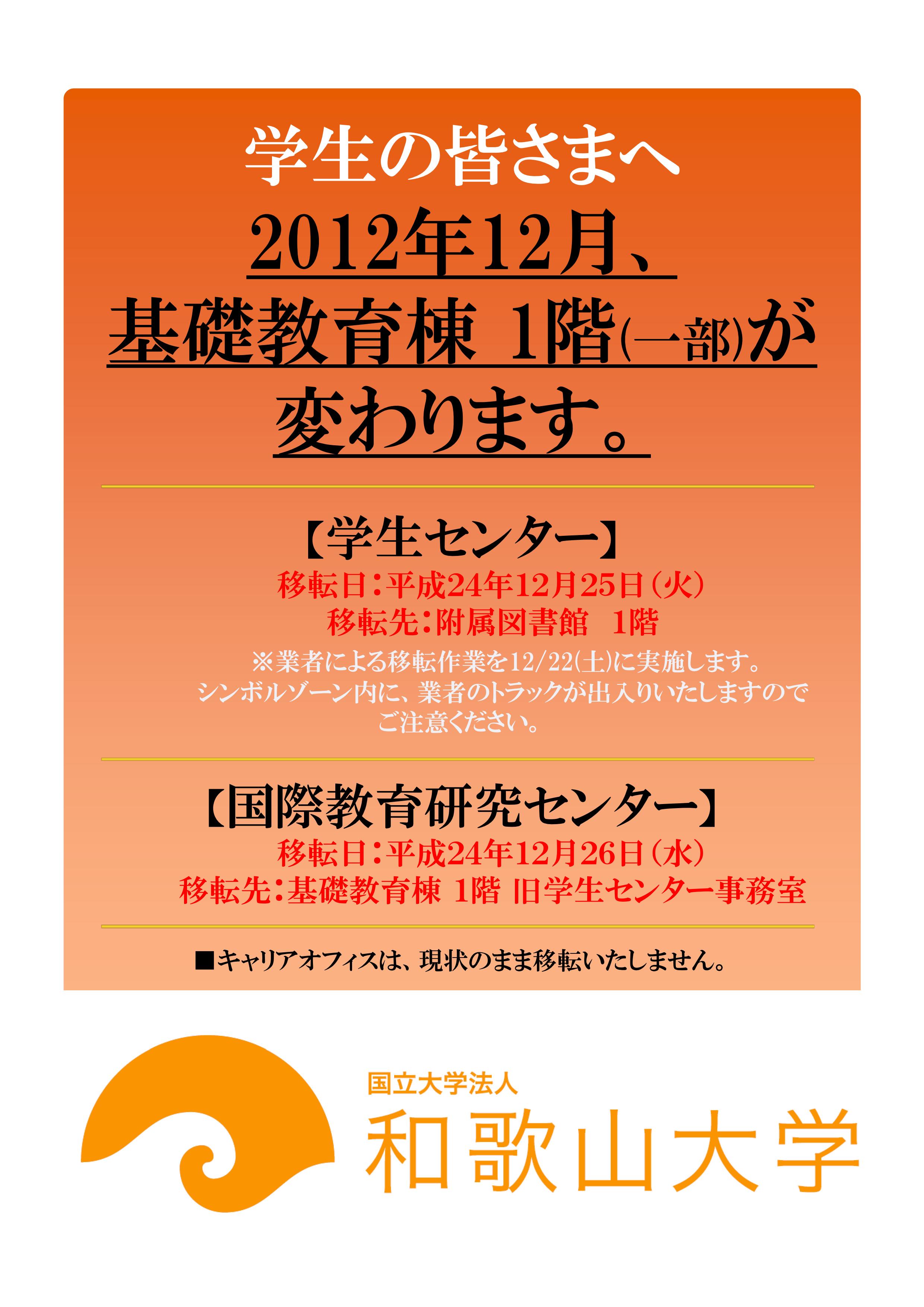 「学生センター」及び「国際教育研究センター」は、下記のとおり事務室を移転いたします。
