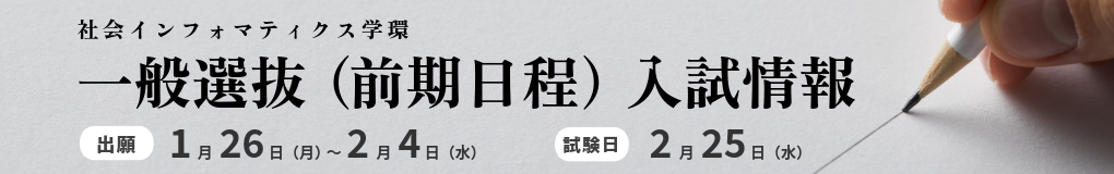 社会インフォマティクス学環では、このたび、その教育の特長をはじめ、入学者選抜の内容等についてご理解いただくための「社会インフォマティクス学環入学説明会」を下記のとおり開催します。(事前申込優先)