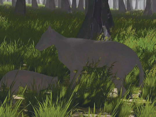 ニホンオオカミの復元とその生態を観察できるVR展示システムの開発を行いました。その剥製は世界に4体しかなく、その1体である本学の剥製の形状は不自然であると報告されています。そこで、CGを用いてニホンオオカミの骨格からその本来の姿の推測と復元を行い、彼らの生活する様子をVRで観察できる展示システムを開発しました。