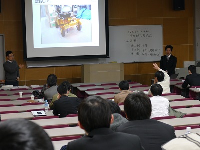 公開日 2017年02月23日 システム工学部光メカトロニクス学科では、以下の日程で、卒業研究発表会を開催しました。 日程:2017年2月22日(水)9:10~ 会場:システム工学部A棟1階 A101室、A103室 光メカトロニクス学科では、今年度から、企業等学外の皆様にもご参加いただけるようにいたしました(ご案内のページはこちら)。 各会場では、熱のこもった発表および質疑口頭が行われました。