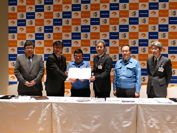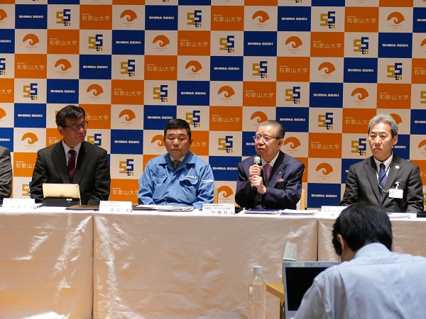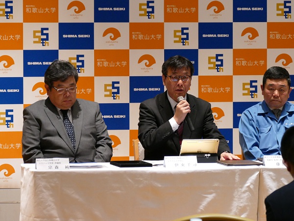 この協定は、学生の持つ創業者としての資質を開花させ、和歌山県の産業育成の一助となることを目的としたもので、和歌山大学システム工学部と株式会社島精機製作所とが互いに協力してインターンシップを実施します。また、和歌山県は、インターンシップに参加した学生が将来県内で創業しようとする際には、その支援を行う立場で、立会人として署名しました。