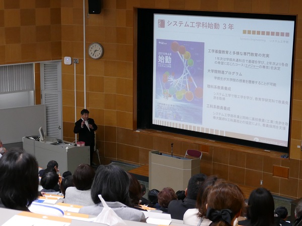 システム工学部A棟101室では、後援会システム工学部支部総会が行われました。さまざまな議題について審議および承認が行われ、最後に、宗森純学部長から、システム工学科の概要および特長や、優秀な学生に対する独自の表彰制度、そして就職状況などについて詳細な説明がありました。