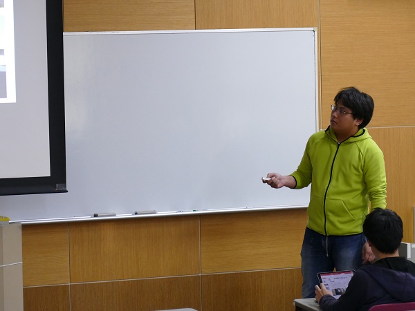 藤野さんはオーストラリアのディーキン大学(ワーナンブールキャンパス)に、山本さんはデンマークのデンマーク工科大学に、それぞれ留学しました。留学先の大学や研究室の様子、現地で行った研究内容などについての報告がありました。また、これから留学を目指す人へのアドバイスとして、例えば、英語力の指標は、日本ではTOEICが一般的であるが、海外ではTOEFLを使用していることが多いという話がありました。