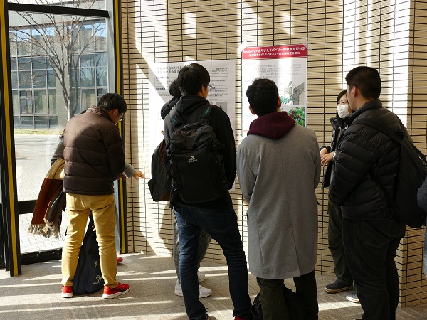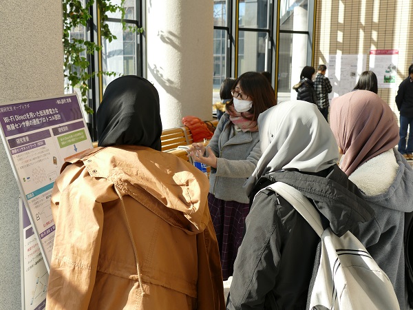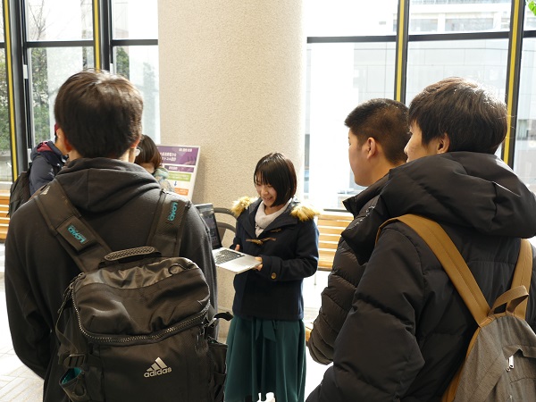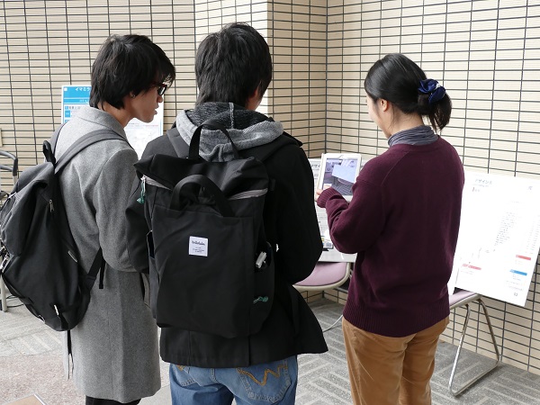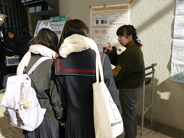 このうち、12月5日と12月7日は、本学男女共同参画推進室および文部科学省科学技術人材育成費補助事業「ダイバーシティ研究環境実現イニシアティブ(牽引型)」の取り組みの一つとして実施し、女子学生が説明を担当しました。