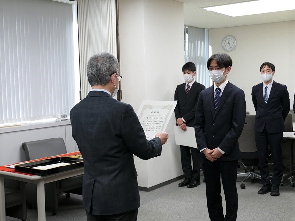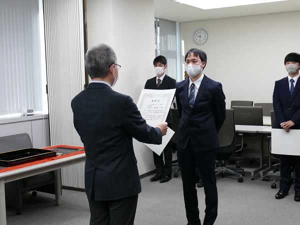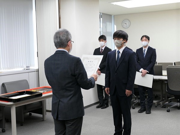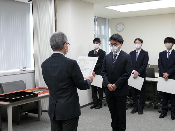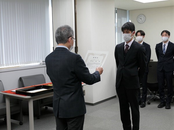これは、学会やコンテストで受賞するなど、研究活動等において学外で高い評価を受けた学生のうち、特にその業績を認められたものを表彰する制度で、2004年より行われています。