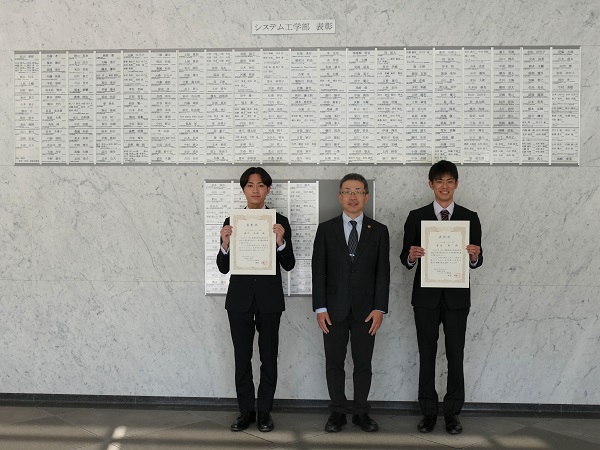 表彰される学生は、研究科長(学部長)から表彰状を授与されるとともに、北1号館エントランスホールには、氏名と受賞内容が記された表彰者プレートが掲げられます。