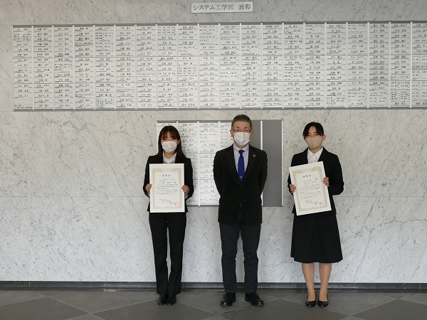表彰される学生は、研究科長(学部長)から表彰状を授与されるとともに、北1号館エントランスホールには、氏名と受賞内容が記された表彰者プレートが掲げられます。