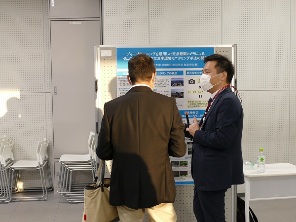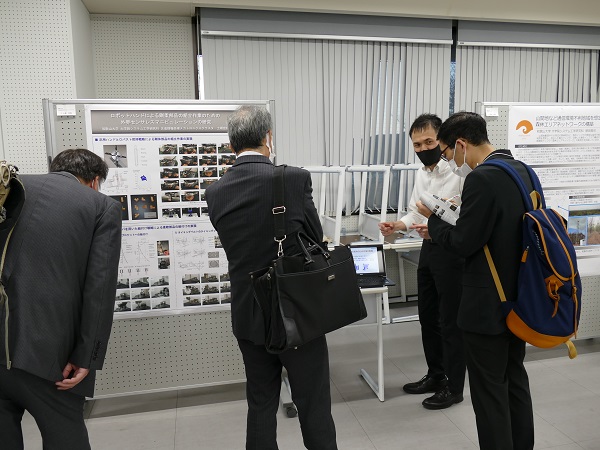 惠下隆理事・産学連携イノベーションセンター長の挨拶を挟み、会場を移してポスター発表を行いました。ここでは、口頭発表の補足説明や活発な質疑応答が終了予定時刻まで続きました。
