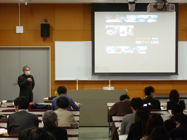 今回の最終講義では、先生の専門分野である建築設計について、先生が設計された代表的な作品の紹介とともに、周辺環境をもとに考えることの大切さなど、作品の着想にいたった背景やエピソードなどについて、ご講演いただきました。