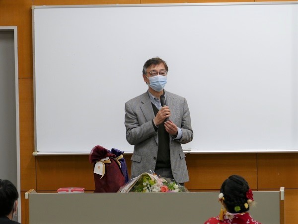 本学部システム工学科材料工学メジャー(旧精密物質学科)の田中一郎教授が、本年3月末をもちまして定年退職されます。つきましては、卒業式の日である3月25日(木)に、田中一郎教授を送る会を開催いたしました。