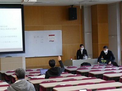 決められた時間で発表を行い、質疑応答においては、出された質問に対し、はきはきと応答している様子が見受けられました。