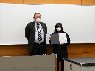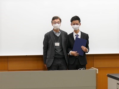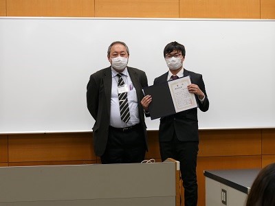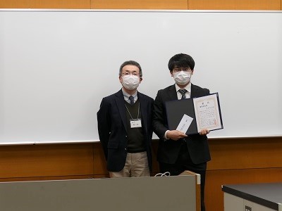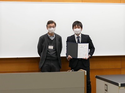 発表者は、ショートプレゼンテーションで、各自の研究の概要を説明した後、ポスター発表を行いました。各メジャーの学生に加え、和歌山工業高等専門学校専攻科2年生の4名が特別発表を行い、本学大学院システム工学研究科の14名もポスター発表に参加しました。それぞれの発表について教員が評価を行い、各メジャー主任より優秀発表者に表彰状が授与されました。
