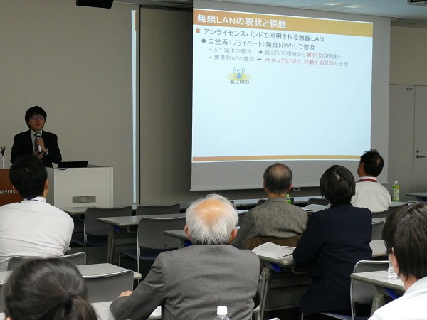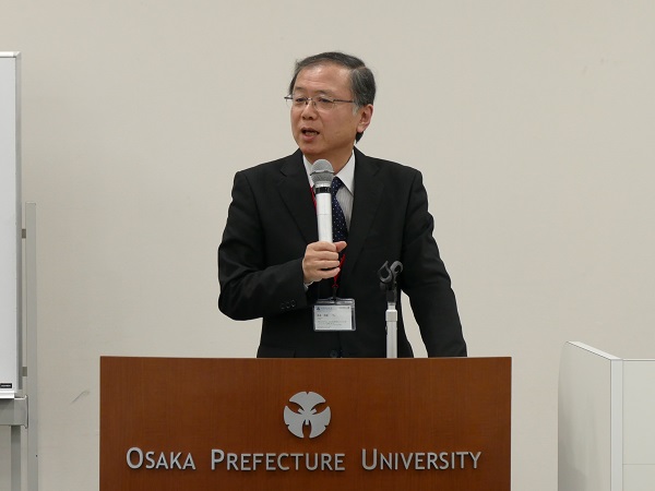 本発表会は、大阪府立大学大学院の森本茂雄工学研究科長の開会挨拶で幕が開き、続いて口頭発表が行われました。第1部は大阪府立大学大学院工学研究科の教員が発表を行い、第2部は本学大学院システム研究科の教員が発表を行いました。今年は、企業や公的機関の関係者、本研究科の学生など約70名が参加し、研究者の発表に熱心に耳を傾けました。