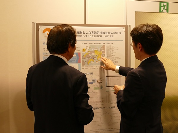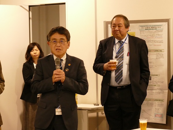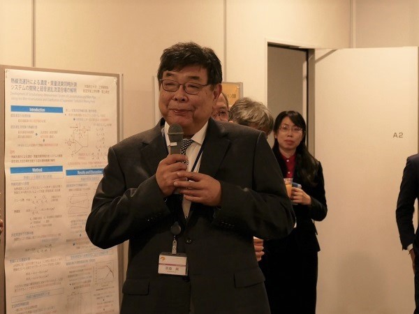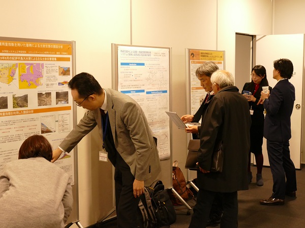 その後のポスター発表・交流会は、本学大学院の宗森純システム工学研究科長の挨拶で始まりました。多様な分野の研究者や企業等関係者が一堂に会することで、情報交換や交流を深めることができる有意義な場となりました。そして、終了時刻まで活発に口頭発表の補足説明や質疑応答が行われ、盛況のうちに閉会となりました。