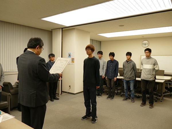 これは、学会やコンテストで受賞するなど、研究活動等において学外で高い評価を受けた学生のうち、特にその業績を認められたものを表彰する制度で、2004年より行われています。