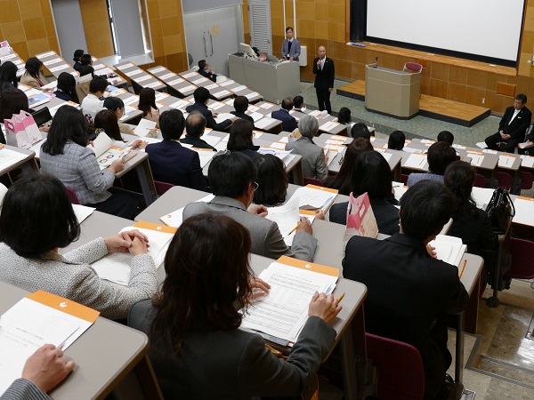 入学式終了後は、本学栄谷キャンパスに場所を移し、後援会総会が行われました。