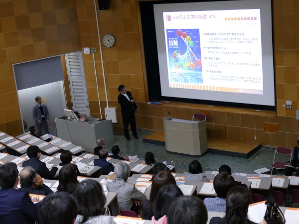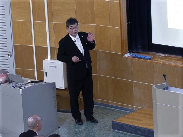 北1号館101室では、後援会システム工学部支部総会が行われました。さまざまな議題について審議が行われ、最後に、宗森純学部長から、システム工学部の概要および特長、優秀な学生に対する学部独自の表彰制度、進路・就職状況、学部独自の取り組みなどについて詳細な説明がありました。