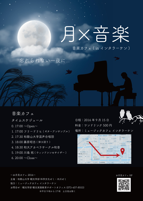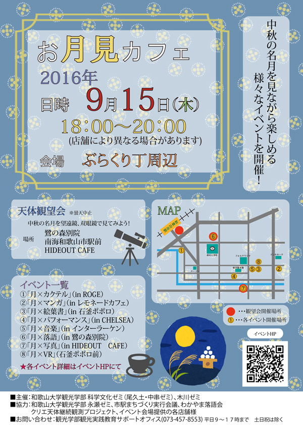 観光学部科学文化ゼミ(尾久土・中串ゼミ)・木川ゼミでは、「お月見カフェ@ぶらくり丁」を開催します。
