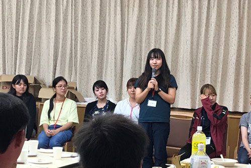 大阪、尚絅、岐阜、高知、京都、東京芸術、東北、神戸大学から36名が出席しており、本学からは岩安良祐さん、利光知佳さん(いずれも4年生)、山田優花奈さん(3年生)の3名です。