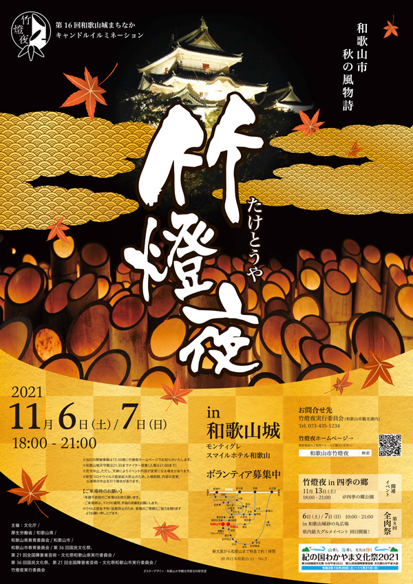 和歌山城など和歌山市内の夜を彩る恒例のあかりイベント「竹燈夜」も今年で16回目となります。