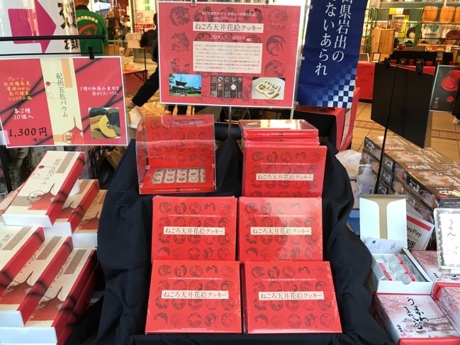 北村ゼミによる岩出市でのフィールドワーク等の調査に基づいて、学生からお土産物の企画が提案され、その中から「ねごろ天井花絵クッキー」(観光学部4年山中亜純さんの企画・デザイン)が制作、そして販売に至っています。