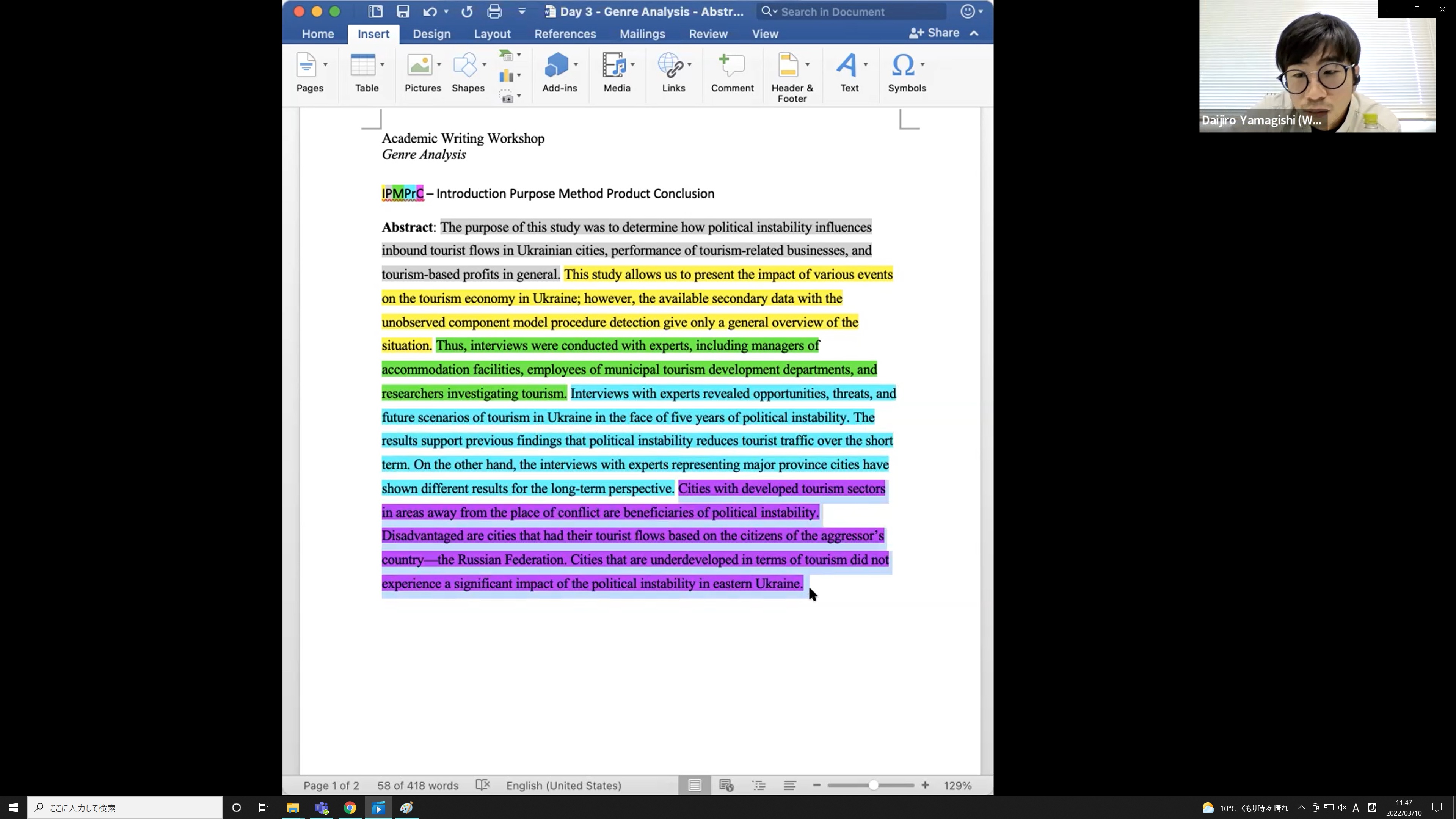 観光学研究科博士前期課程・今後進学予定の観光学部生を対象に、外部講師による「Academic English Writingワークショップ」を実施しました。