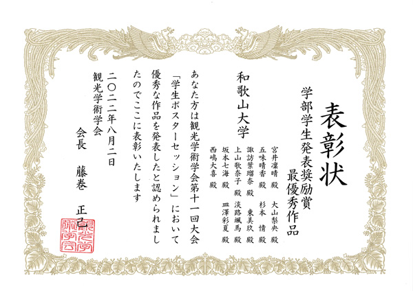 受賞しました!~「観光学術学会第11回大会」学生ポスターセッション(最優秀賞、優秀賞)
