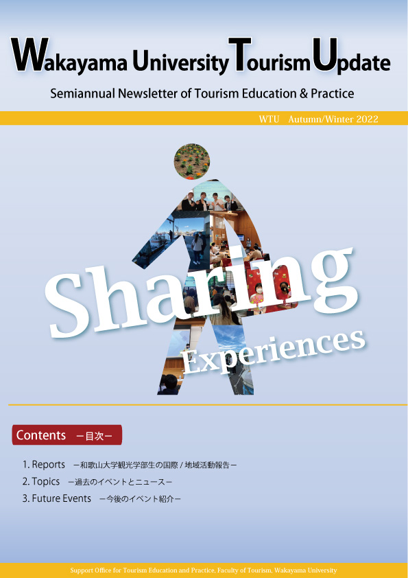 公開日 2022年10月27日 Newsletter -Wakayama University Tourism Update(WTU)の最新号を掲載しました。 詳細は下記をご覧ください。 Newsletter -Wakayama University Tourism Update のページ お問い合わせ 観光学部