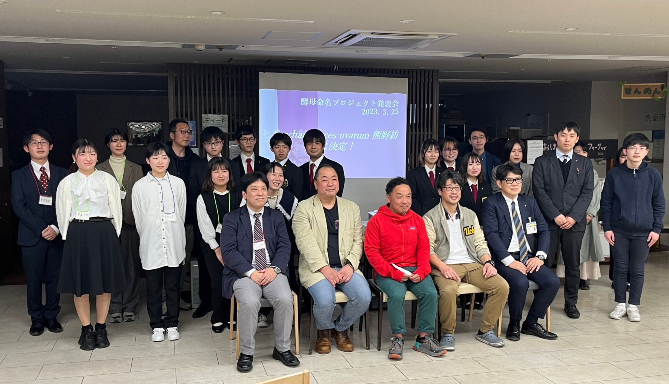 しかしこの酵母には、既定の学術名「Saccharomyces uvarum[サッカロマイセス・ウバルム]」しかなかったことから、本学観光学部の出口竜也研究室の4年生・6名(大前陶子さん、陰山心花さん、川島千那実さん、杉本 情さん、野田こはるさん、山下千春さん)が、この酵母の名前(愛称)を決定すべく「酵母命名プロジェクト」に取り組んできました。