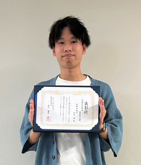 このうち、本学部よりエントリーしていた、野田 優さん(4年生、吉田ゼミ所属)「妖怪文化の観光利用についての分析」が「学部学生発表奨励賞・優秀賞」を受賞しました。