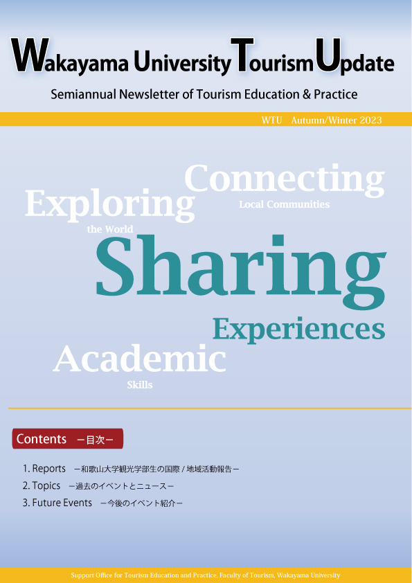 公開日 2023年10月02日 Newsletter -Wakayama University Tourism Update(WTU)の最新号を掲載しました。 詳細は下記をご覧ください。 Newsletter -Wakayama University Tourism Update のページ お問い合わせ 観光学部