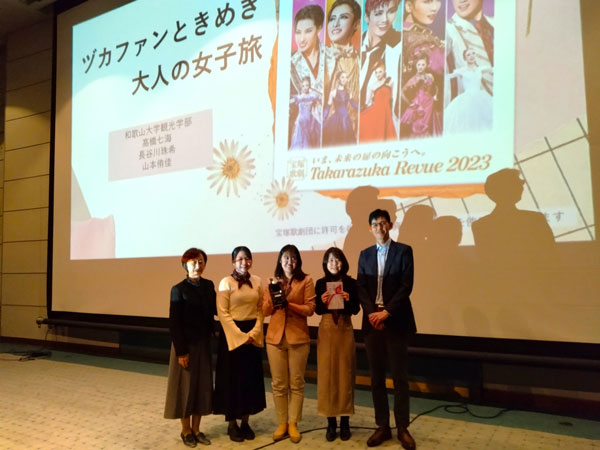 各チームが個性と工夫を凝らした特色ある発表の中、宝塚歌劇の舞台をテーマとした東 悦子ゼミのパリ・ウィーンプランがグランプリを、自己肯定感の向上をテーマとした竹田明弘ゼミのインドプランが優秀賞を受賞しました。