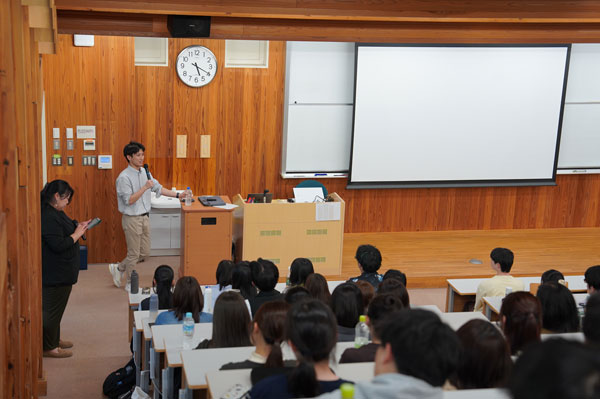 この講義は、1年生全員が受講する「基礎演習」の授業を学部内公開講義として開催しました。