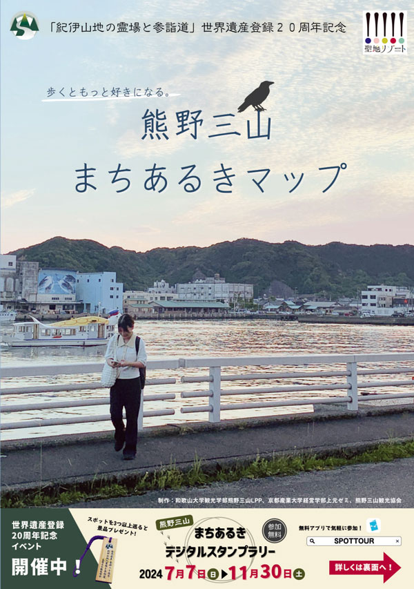 本学部の熊野三山LPP と京都産業大学経営学部の上元ゼミでは、熊野三山観光協会の協力のもと、若年層をターゲットに世界遺産登録20周年を盛り上げる事業として「熊野三山まちあるきデジタルスタンプラリー」を立案。