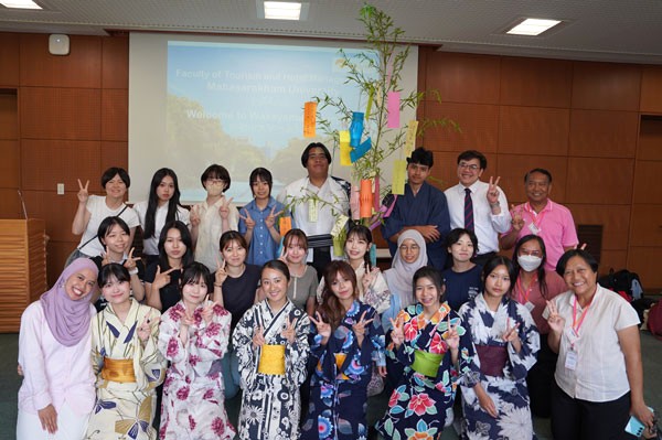 2025年7月7日(月)~9日(水)の3日間、タイ・マハーサーラカーム大学(以下、MSU)の観光・ホテルマネージメント学部から9名(学生5名、教職員4名)を迎えて、研修プログラムを実施しました。