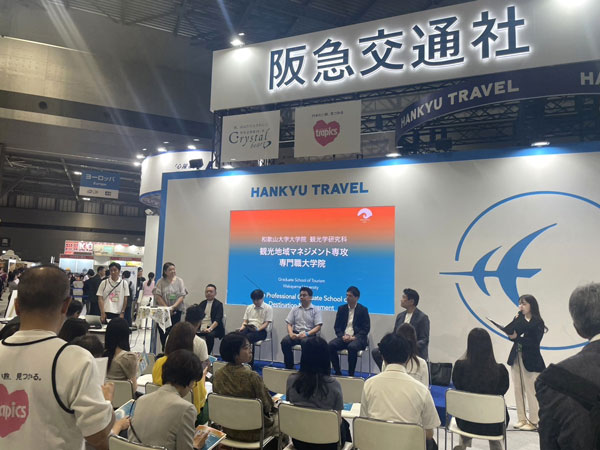 2025年9月26日(金)、「ツーリズムEXPOジャパン2025 愛知・中部北陸」 の阪急交通社ブース において、『大人の学びなおし(リカレント)の世界 これからの観光地域マネジメントと価値創造人材とは』と題して、本学大学院観光学研究科専門職学位課程についてのパネルディスカッションが開催されました。