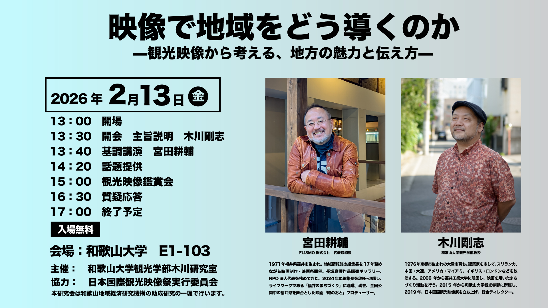 2/13(金)13時~17時開催!~勉強会「映像で地域をどう導くのか―観光映像から考える、地方の魅力と伝え方―」(主催:木川研究室)